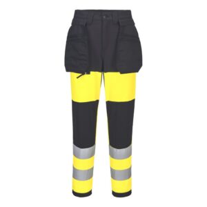 Portwest CD847 WX2 Women’s Hi Vis Stretch Trouser provides four way stretch comfort, recycled fabric construction, ten secure pockets and Class 1 visibility, ideal for sustainable and flexible women’s workwear.