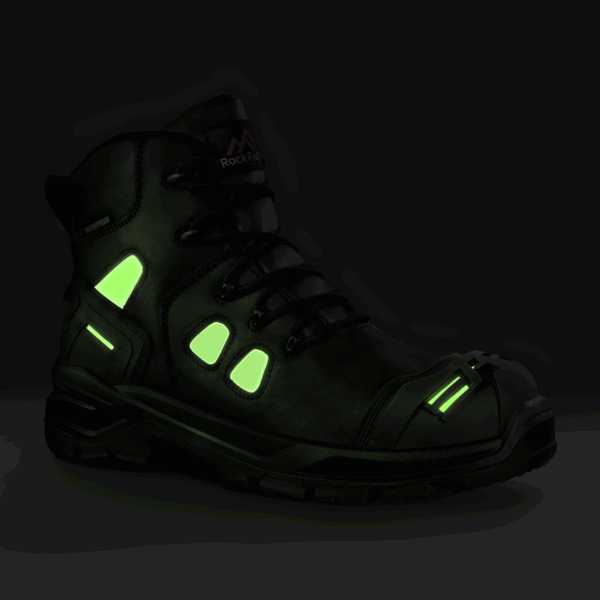 Rock Fall RF603 Sirius VizLite Safety Boot delivers S7S protection with glow-in-the-dark visibility, fibreglass toe cap, penetration resistant midsole and heat resistant outsole for demanding low-light work environments.