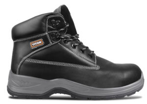 Titan Holton Black Safety Boot S3 combines smooth leather durability, steel protection, and fatigue-reducing comfort. Reliable, water-resistant safety footwear for construction, engineering, and trade professionals.