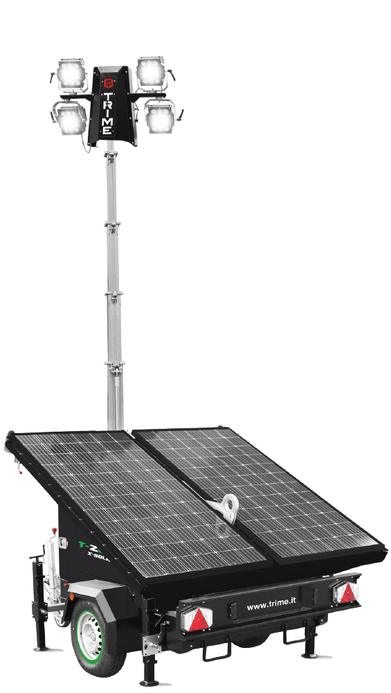 The Trime X-SOLAR 4×60W Solar Lighting Tower delivers zero-fuel, zero-emission lighting using four extendable solar panels and eight AGM batteries. With silent operation, 2,000m² coverage and an 8.5m hydraulic mast, it’s the ideal sustainable alternative to diesel lighting towers.
